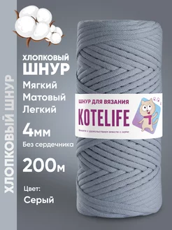 Шнур хлопковый 4мм для вязания и макраме 200м Серый