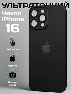 Чехол для Apple iPhone 16 Айфон 16 черный с логотипом