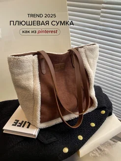 Сумка плюшевая шоппер меховая барашек