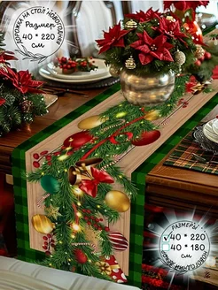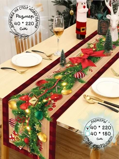 Скатерть дорожка на стол тканевая новогодний декор на стол