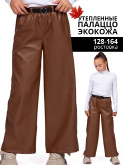 Кожаные брюки палаццо для подростка теплые