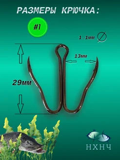 Крючок рыболовный двойник Щучий №1 0 в упаковке 10шт