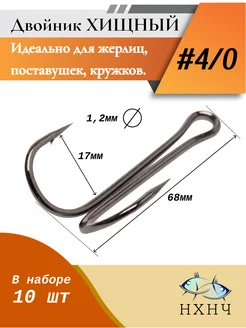 Крючок рыболовный двойник Хищный №4 0 long в упаковке 10шт