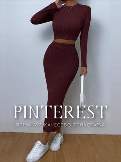Трикотажный костюм в рубчик с юбкой