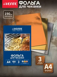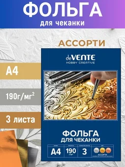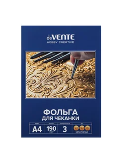 Фольга д чеканки 3листа A4 серебристый, золотистый, бронзовы