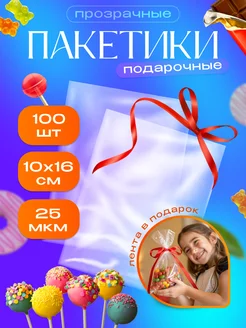 Пакеты для сладостей 10см*16см 100шт красная лента