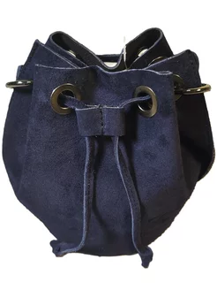Сумка через плечо из натуральной замши темно-синяя (кисет)
