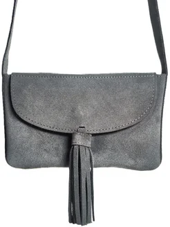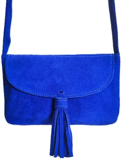 Сумка через плечо из натуральной замши ярко-синяя с кистью