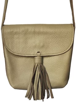 Сумка через плечо из натуральной кожи бежевая с кистью