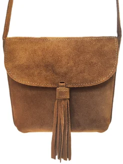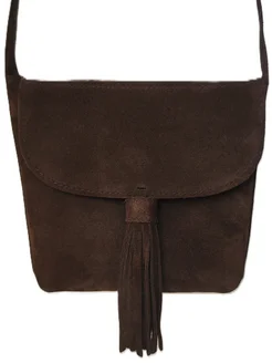 Сумка через плечо из натуральной замши шоколадная с кистью