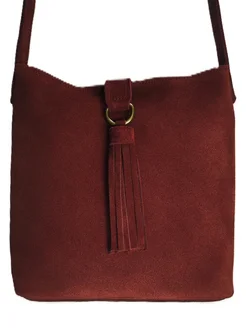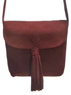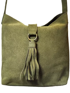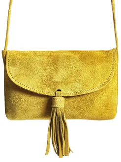 Сумка через плечо из натуральной замши жёлтая с кистью