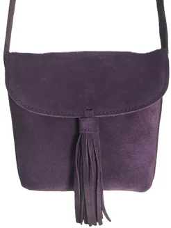 Сумка через плечо из натуральной замши фиолетовая с кистью