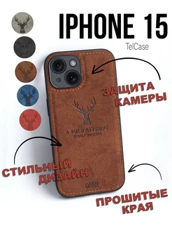 Чехол кожаный на iPhone 15 с рисунком