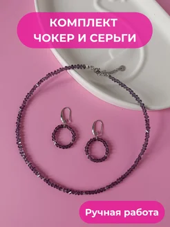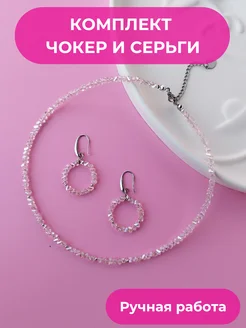 Чокер колье на шею и серьги кольца