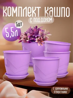 Кашпо для комнатных цветов с поддоном 5.5 л в наборе 5 шт