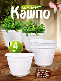 Кашпо для комнатных цветов с поддоном 4л в наборе 5 шт