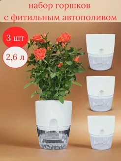 Кашпо горшки для цветов с фитильным автополивом 3 шт 2,6 л