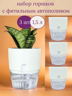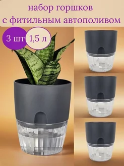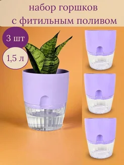 Кашпо горшки для цветов с фитильным автополивом 3 шт 1,5 л