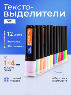 Набор текстовыделителей в пенале, 12 цветов, 1-4 мм