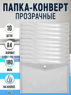 Папка конверт прозрачные на кнопке А4 белый 10 штук