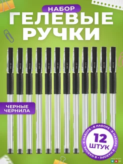 Ручки гелевые черные набор в школу 12 шт