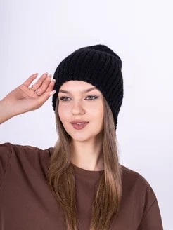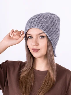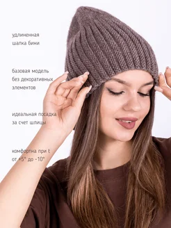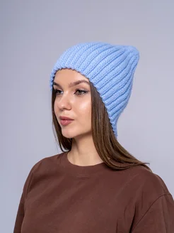 шапка вязаная бини удлиненная осенне-зимняя с разрезом сзади