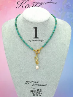 колье из натуральных камней турквенит и говлит с подвеской