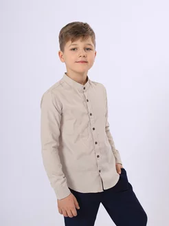 Рубашка школьная воротник стойка бежевая