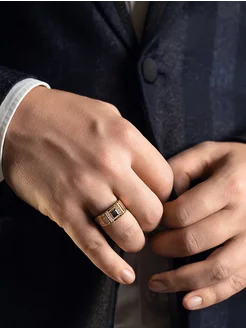 Серебряное кольцо печатка с красной позолотой и фианитами