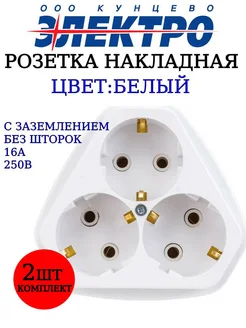 Розетка тройная накладная с заземлением 2 шт