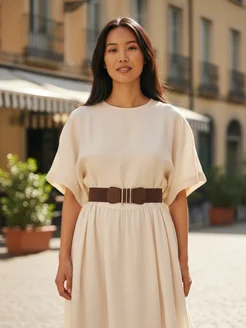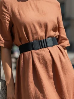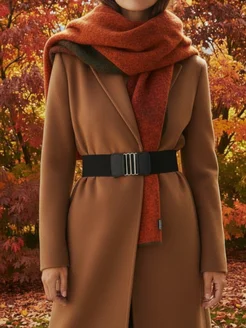Ремень широкий эластичный для пальто и пуховика коричневый