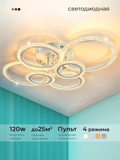 Люстра потолочная светодиодная с пультом для спальни и зала