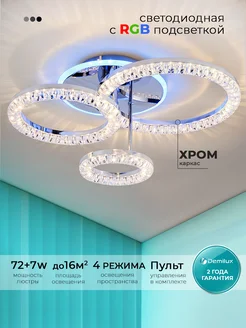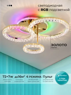 Люстра потолочная светодиодная с RGB подсветкой и пультом
