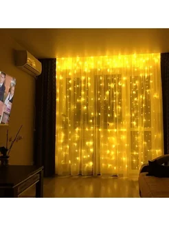 Гирлянда-штора 2х2 м теплый белый свет, удлинитель 3 м