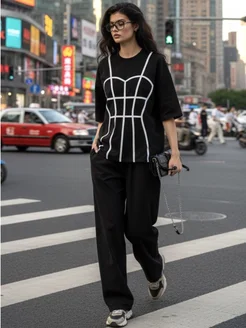 Футболка плотная оверсайз с принтом корсета y2k