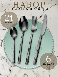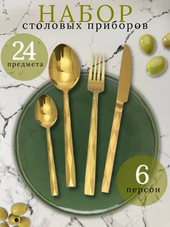 Набор столовых приборов 24 предмета на 6 персон золотистый