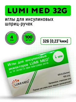 Иглы для инсулиновых шприц-ручек 32G, длина 4мм,100 шт
