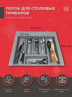 Лоток для столовых приборов в ящик L 550 мм светло-серый