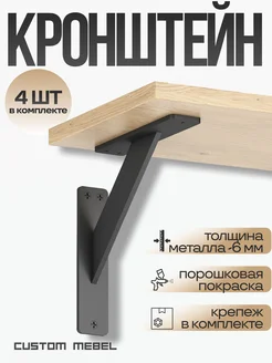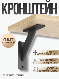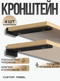 Держатель, кронштейн для полок металл 19 см, 4 шт. Черный