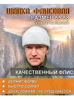 Шапка флисовая белая для охоты и рыбалки