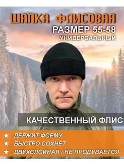 Шапка флисовая черная для охоты и рыбалки