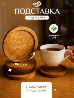 Подставка под горячее кружку, материал дуб, 10 см 3 шт