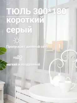 Тюль в спальню и гостиную 300*270 длинная готовая на ленте