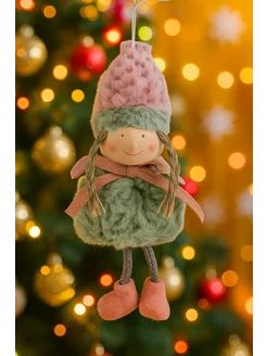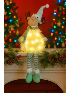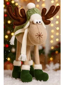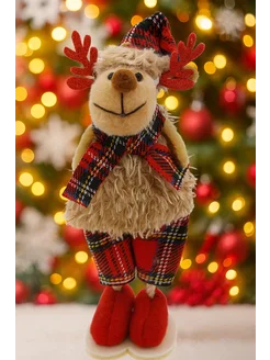 Новогодняя мягкая игрушка. Бежевый олень в шарфе