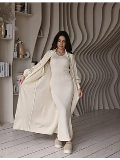 Женский костюм с брюками трикотажный лапша в рубчик двойка
