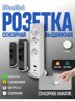 Сенсорная выдвижная встраиваемая розетка в столешницу