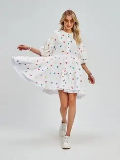Платье оверсайз осеннее из муслина с сердечками