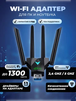 Wi-fi адаптер для компьютера и ноутбука 5G USB до 1300 mb