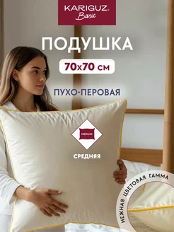 Подушка для сна 70х70 перьевая натуральная средняя полиэстер