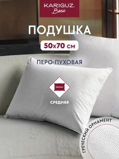 Подушка для сна 50х70 перьевая натуральная средняя полиэстер